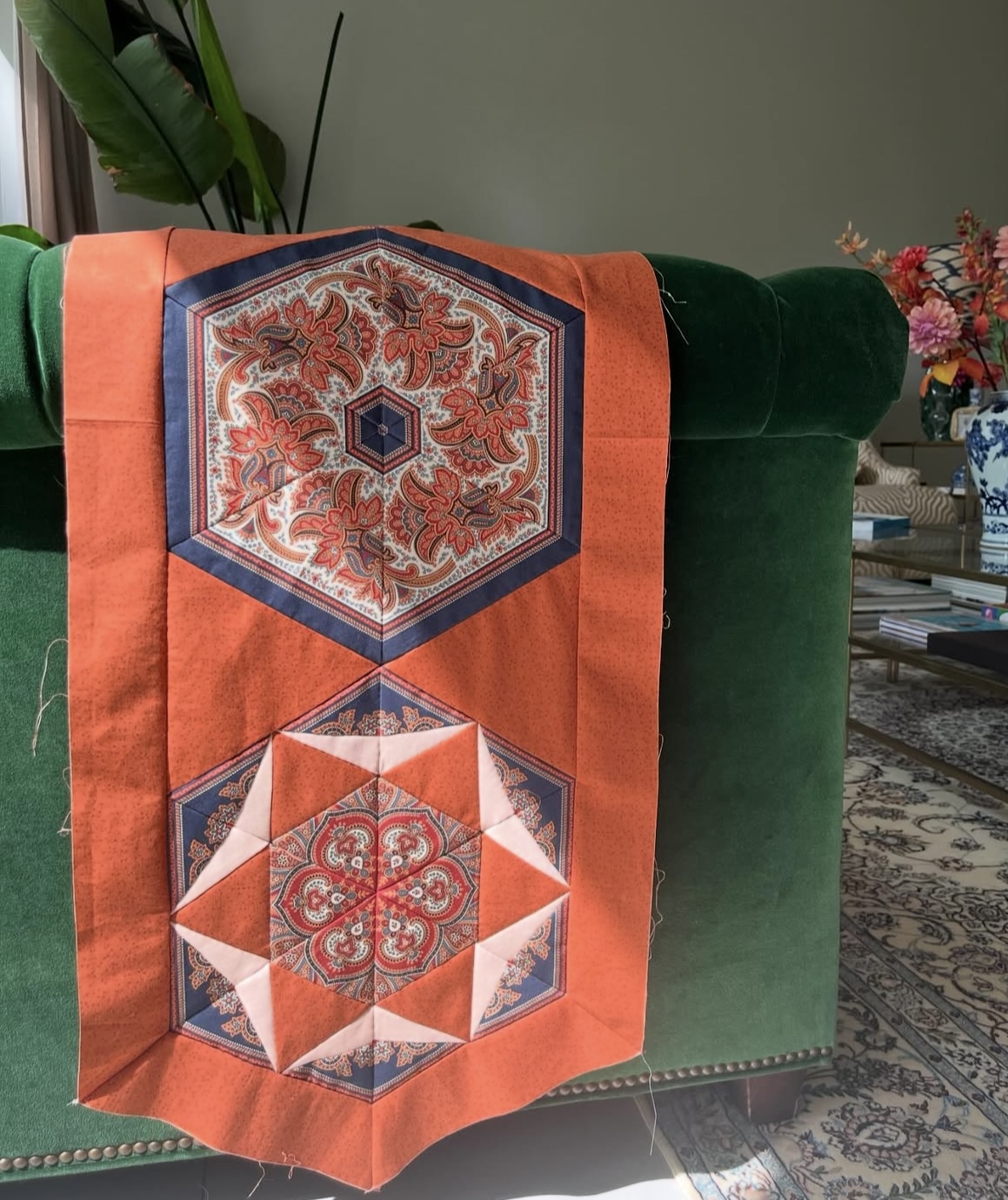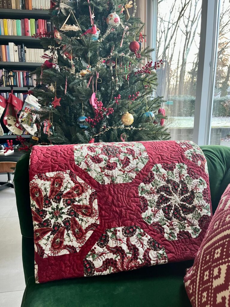 Ik ben Liesbeth en verzot op quilten! Ik quilt voornamelijk alles met de hand maar heb in het verleden ook een heel aantal quilts met de naaimachine gemaakt. Beide methodes hebben zo hun voor- en nadelen, maar mijn voorkeur gaat uit met de hand omdat je meer verfijnd kunt werken en het erg ontspannend is.